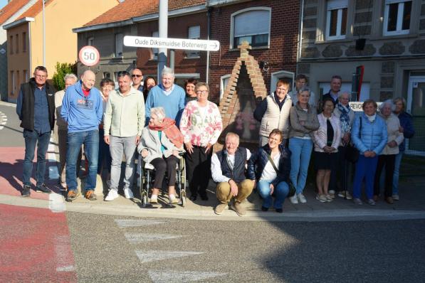 Meulebeke / Geloof Meulebeke / Geloof Buurtbewoners bidden weer rozenkrans aan kapelletje Gentstraat Buurtbewoners van de Gentstraat, Kortestraat en Oude Diksmuidse Boterweg in Meulebeke zijn begin mei weer samengekomen om de rozenkrans te bidden aan het kapelletje van André Bostoen. Diaken Davy Verkest leidde de plechtigheid. 9 mei 2023