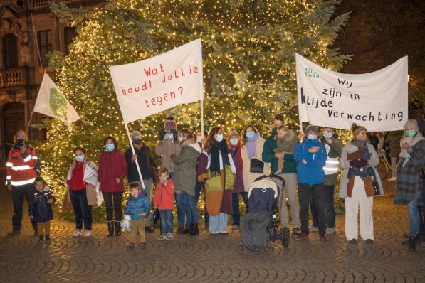 Brugge / Samenleving Brugge / Samenleving Actievoerders staan voor een gesloten Brugs stadhuis Twee actiegroepen betoogden maandagavond voor het Brugse stadhuis, ze wilden de gemeenteraadsleden warm maken voor hun eisen. Maar ze stonden voor een gesloten poort, want de gemeenteraad werd wegens corona online georganiseerd. Enkel voorzitter Annick Lambrecht bevond zich in het stadhuis. 5 december 2021