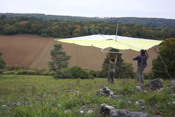 Video Kortrijk / Kunst Video Kortrijk / Kunst Zelfgemaakte deltavlieger strijkt neer op WONDER: “Met de intentie om naar Frankrijk te vliegen” Het stadsfestival WONDER gaat op donderdag 16 oktober van start in Kortrijk. Op de locatie Kaai City aan de Meersstraat is daar de deltavlieger Birdmen te bezichtigen, een performance/installatie van de Gentse kunstenaars Milan Veraart Steffen (23) en Jonas Van Geel (23). 14 oktober 2025