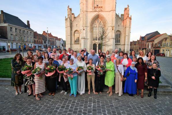 Wervik / Samenleving Wervik / Samenleving Pensioenfeest huldigt acht medewerkers van Woon- en Zorgbedrijf Wervik Tijdens een pensioenfeest huldigde het Woon- en Zorgbedrijf Wervik acht voormalige medewerkers. Ze werden samen met hun partner uitgenodigd en mochten bovendien elk vijf collega’s meenemen om mee aan te schuiven aan de feesttafel. Onder de acht gepensioneerden bevond zich ook algemeen directeur Myriam Deloddere. Zij begon haar carrière bij het OCMW als secretaris op 1 mei 1998, als opvolger van Palmer Blieck. 19 april 2025