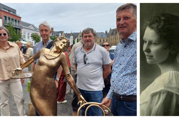 Poperinge / Samenleving Poperinge / Samenleving Tien jaar Ginger in Poperinge: Van ros meisje tot bronzen icoon Tien jaar geleden werd het standbeeld van Ginger onthuld op de Grote Markt in Poperinge. Ginger - wat roodachtig of ros betekent - was de bijnaam die Britse soldaten gaven aan Eliane Cossey, het roodharige meisje dat in het café A la Poupée van haar ouders werkte op de Grote Markt. Heemkring Aan de Schreve en Art Studio Boudry herdenken dit met een expo over de ‘making of’ en een vertelwandeling langs de Boudry-wandelroute. 2 juni 2025