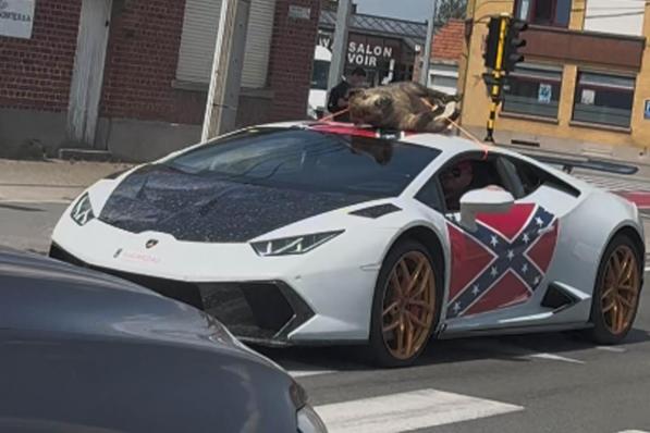 Kortrijk / Samenleving Kortrijk / Samenleving Lamborghini rijdt met everzwijn op het dak door Kortrijk: “Sommigen dachten dat ze door de temperaturen aan het hallucineren waren” Wie de afgelopen dagen in Kortrijk op stap was, had grote kans om een erg merkwaardig tafereel te zien. Een peperdure Lamborghini reed er door de straten, met een everzwijn op het dak. Het was geen reclame voor het jachtseizoen, maar een nieuwe stunt van de rekels van Pat Nutrition. “Je moet eigenlijk zelf een zwijn zijn, om met een zwijn op het dak rond te rijden.” 2 juli 2025