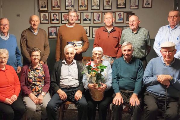 Boezinge / Verenigingsleven Boezinge / Verenigingsleven “Maar liefst 65 jaar speelt muziek een grote rol in het leven van Paul Vermeersch”: leden Harmonie St. Cecilia Elverdinge ontvangen ereteken voor jarenlang engagement Tijdens het jaarfeest van de Koninklijke Harmonie St. Cecilia kregen twaalf leden een ereteken overhandigd voor hun jarenlang engagement en inzet in de muziekwereld. Zwaargewicht daarbij is Paul Vermeersch die het briljanten ereteken kreeg voor 65 jaar muzikant. 20 november 2025