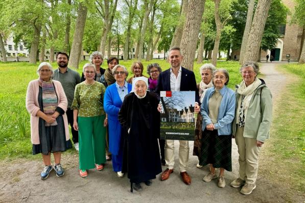 Brugge / Samenleving Brugge / Samenleving Bewoonsters van Begijnhof in Brugge ondertekenen een charter om deze door Unesco beschermde site met respect te beheren Een dozijn bewoonsters van het Begijnhof in Brugge hebben samen met schepen van patrimonium Pieter Marechal hun handtekening gezet onder het nieuwe bewonerscharter. Deze ondertekening vond plaats op het Begijnhof zelf en staat voor het gezamenlijke engagement van Stad Brugge en de bewoonsters van het Begijnhof om deze unieke erfgoedsite met zorg en respect te beheren. 16 mei 2025