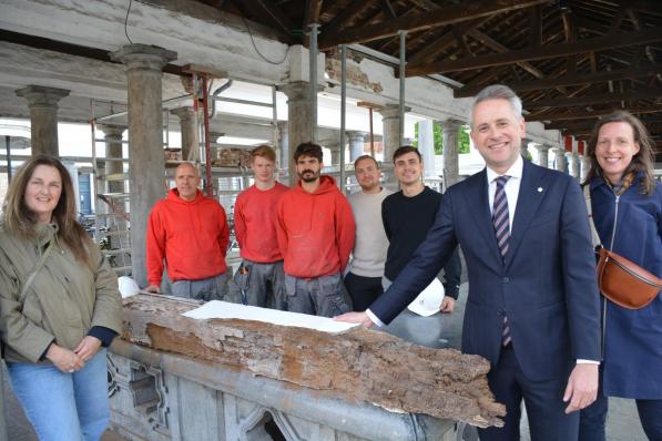 Brugge / Samenleving Brugge / Samenleving Vismarkt in Brugge krijgt nieuwe houten balken voor extra stabiliteit: “Opnieuw een open en aantrekkelijke plek voor handelaars en bezoekers” Twee houten balken in twee traveeën van de Vismarkt in Brugge zijn in slechte staat en worden vervangen door nieuwe eiken balken om de stabiliteit te verzekeren. Het beschadigde metselwerk erboven wordt verwijderd en nadien zorgvuldig hersteld. 2 juni 2025