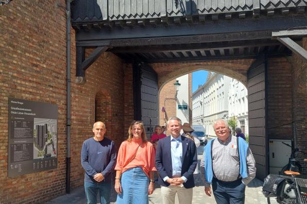 Brugge / Samenleving Brugge / Samenleving Poort Gruuthusepaleis gerestaureerd: “Het krijgt opnieuw de uitstraling die het verdient” De historische houten poort aan het binnenplein van het Gruuthusepaleis kreeg een grondige opfrisbeurt. Zowel de poort zelf als het smeedijzeren beslag en het uithangteken met vergulde halve maan aan de hoek van de conciërgewoning werden zorgvuldig gerestaureerd door vakmensen van stad Brugge en externe specialisten. 10 juli 2025