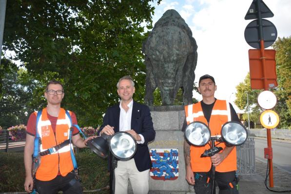 Brugge / Samenleving Brugge / Samenleving Brugge herdenkt bevrijding met sfeervol verlichte bizons aan Canadabrug: “Hulde aan onze geschiedenis” Ter gelegenheid van de herdenking van de bevrijding in 1944 zet Stad Brugge dit weekend de imposante bizons aan de Canadabrug letterlijk in het licht. Van vrijdagavond 5 september tot en met maandagavond 8 september worden de beelden vanaf zonsondergang sfeervol verlicht. 5 september 2025