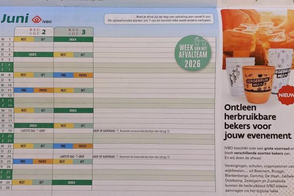 Brugge / Nieuws Brugge / Nieuws Brugse afvalkalender voor 2026 houdt geen rekening met nieuw afvalplan: in mei komt er nieuwe kalender Deze ochtend hebben tal van Bruggelingen een afvalkalender van IVBO voor 2026 in hun brievenbus gekregen. Die kalender houdt geen rekening met het nieuwe afvalplan dat de Stad Brugge vanaf 1 juni wil invoeren en bevat nog wekelijkse ophalingen van restafval. Volgens IVBO-voorzitter Pieter Marechal zal er in mei een nieuwe kalender bedeeld worden. 16:41