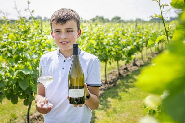 Oostnieuwkerke / Economie Oostnieuwkerke / Economie Aaron (13) uit Staden is de jongste wijnboer van het land: “Ik heb alles zelf gedaan, veel geproefd, maar niet gedronken” De toekomst van het Westrozebeekse wijngoed Choupette lijkt helemaal verzekerd nu zoon Aaron (13) straks zijn eerste wijn op de markt brengt. ‘La Promesse’ is een frisse, aromatische droge wijn die ter gelegenheid van ‘De Open Wijngaardfeesten’ op 5 en 6 juli aan het publiek wordt voorgesteld. 16 juni 2025