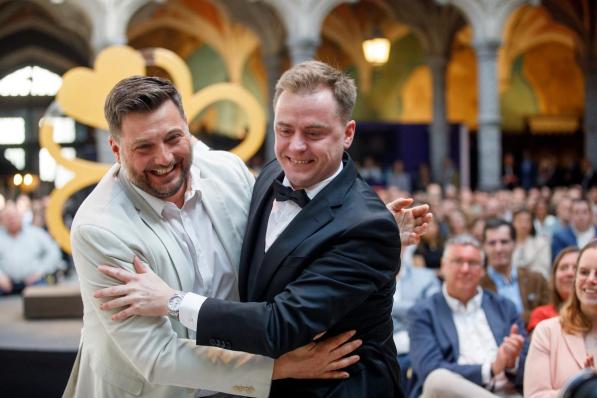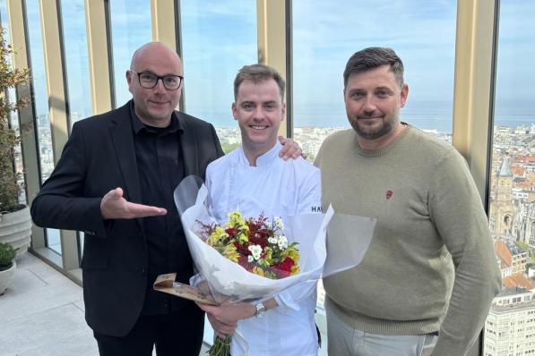 Oostende / Horeca Oostende / Horeca Stad zet sterrenchef Dimitri Proost van restaurant Haut in de bloemen: “Dit zal Oostende een boost geven” Restaurant Haut kreeg bezoek van Oostends schepen voor Toerisme en Protocol Niko Geldof, die namens de stad de felicitaties overmaakte aan Dimitri Proost, maître Randy Degroote en zijn team. Haut behaalde maandag een Michelinster, minder dan een jaar na de opening. Een uitzonderlijke prestatie. 30 april 2025