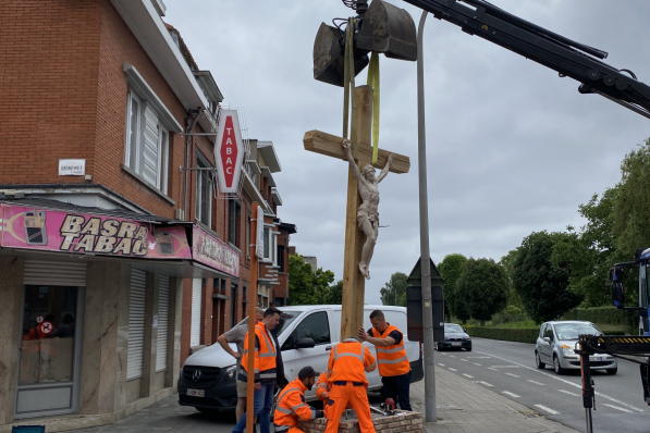 Menen / Samenleving Menen / Samenleving “Dit belangrijk stukje erfgoed is eindelijk terug”: Daels Kruis is na twee jaar waar op oorspronkelijke plaats gezet Het Daels Kruis is terug in Menen. Na een afwezigheid van meer dan twee jaar, werd het iconische beeld terug op haar oorspronkelijke plaats gezet. De terugplaatsing is een belangrijk moment voor zowel het stadsbestuur als de inwoners, die hiermee een zuur hoofdstuk kunnen afsluiten. 16 mei 2025