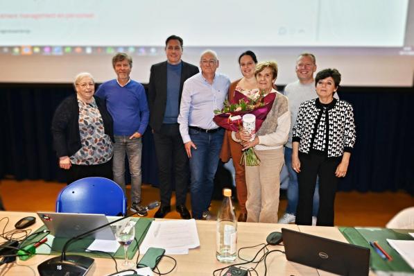 Harelbeke / Gemeenteraad Harelbeke / Gemeenteraad Rita Beyaert neemt afscheid van de politiek Op de voorlaatste gemeenteraad van deze legislatuur in Harelbeke werd voormalig OCMW-raadslid, schepen, burgemeester en huidig gemeenteraadsvoorzitter Rita Beyaert in de bloemetjes gezet. Zij neemt na 42 jaar afscheid van de politiek. “We zeggen tot ziens aan een grande dame, een heerlijk mens”, getuigt huidig eerste schepen Francis Pattyn. 19 november 2024