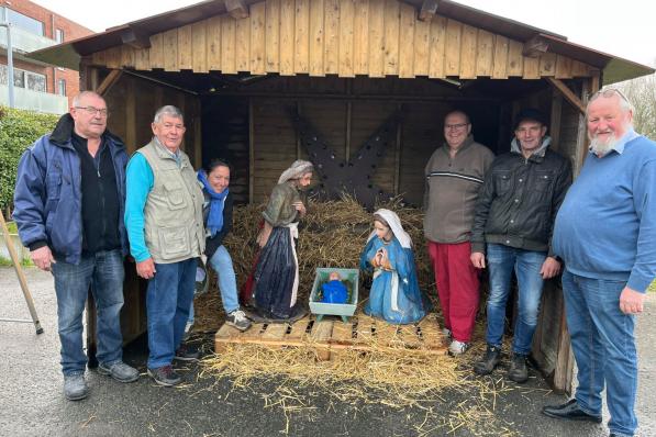 Deerlijk / Evenement Deerlijk / Evenement Kerststal op de Molenhoek wordt in ere gehouden Sinds het slopen van de kerk op de Molenhoek blijven vrijwilligers van de wijk zorgen voor de kerststal die decennialang tegen de kerkwand prijkte. Half december beginnen zij traditioneel met de stal opbouwen. Pionier Romain Vandenberghe is er nog steeds graag bij. “Michel Vandekerckhove tekende bijna veertig jaar geleden de details voor de bouw van een kerststal uit. Samen met Etienne Scherpereel werkte ik het plan uit. Onze wijk moest immers ook een kerststal hebben.” 23 december 2023