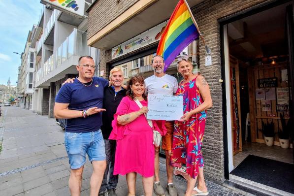 Oostende / Samenleving Oostende / Samenleving Regenbooghuis aan Zee ontvangt cheque van 10.000 van Sonja en haar partner Jacky na uitzonderlijke wandeltocht Een bijzondere avond voor het Regenbooghuis aan Zee, dat zaterdagavond een cheque van maar liefst 10.000 euro in ontvangst mocht nemen. De gift is het resultaat van een uitzonderlijk initiatief van Sonja Saelens en haar partner Jacky Van Hulle (57), beter bekend als ‘Tommeke doet het weer’. Met hun project wilden ze niet alleen financiële steun bieden aan het Regenbooghuis, maar ook een krachtige boodschap van liefde, respect en verdraagzaamheid uitdragen voor de LGBTQIA+ gemeenschap in Vlaanderen. 15 juni 2025