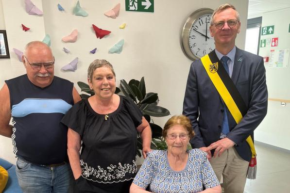 Izegem / Samenleving Izegem / Samenleving Simonne blaast 101 kaarsjes uit in wzc ‘t Pandje: “Deze leeftijd bereikt door dagelijks veel plezier te maken” In het woonzorgcentrum ’t Pandje in Izegem vierde Simonne Dekiere, geboren op 16 juni 1924, haar 101ste verjaardag. Schepen van Burgerzaken Stefaan Van Coillie was er namens de stad Roeselare aanwezig om haar geluk te wensen en bloemen en geschenken te overhandigen. 1 juli 2025
