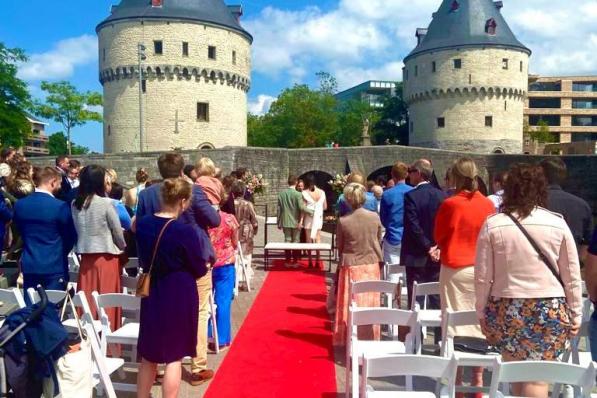 Kortrijk / Huwelijk Kortrijk / Huwelijk Kortrijk laat koppels trouwen tussen de rozen in nieuwe buitenlocatie Vanaf de zomer van 2026 kunnen koppels hun ja-woord geven in een bijzonder decor: de Internationale Rozentuin op Hoog Kortrijk. De stad voegt de plek toe als tweede officiële buitenlocatie voor huwelijken, naast de populaire verlaagde Leieboorden aan de Broeltorens. Jaarlijks vinden zo’n dertig buitenhuwelijken plaats in Kortrijk, en die zijn telkens snel volgeboekt. 9 december 2025
