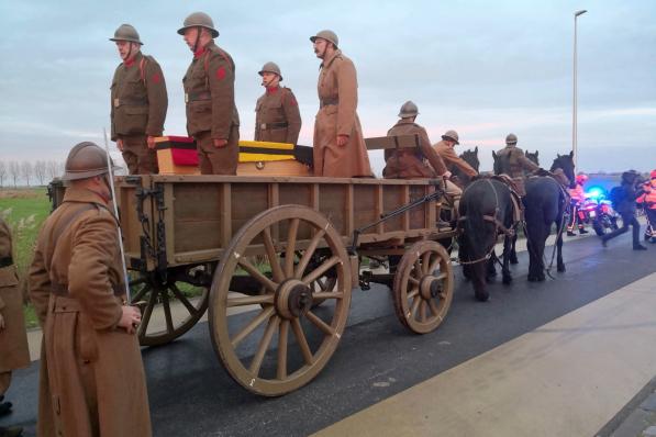 Update Diksmuide / Samenleving Update Diksmuide / Samenleving “We zochten een naam tussen 494 vermisten”: Belgische soldaat krijgt 110 jaar na zijn overlijden alsnog begrafenis met militaire eer Op 23 september 2024 trof een aannemer menselijke overblijfselen aan bij de aanleg van een recreatief pad langs de IJzerdijk in Diksmuide. Een uniformknoop met de Belgische leeuw maakte zijn nationaliteit bekend, maar wie was die man en hoe kwam hij om het leven? "Hij sneuvelde in de zomer van 1915. Het werd een intensieve zoektocht tussen 494 vermisten en we deden zelfs een DNA-onderzoek", zegt Bart Schouppe, diensthoofd Communicatie van het War Heritage Institute. De man kreeg maandag een eresaluut in Diksmuide en De Panne. Dit weten we over hem. 10 november 2025