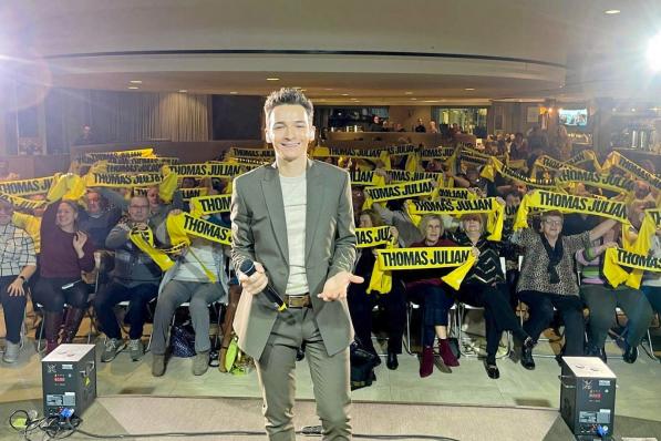 Zwevegem / De PADI show Zwevegem / De PADI show Thomas Julian bracht de single ‘Een Laatste Kus’ uit, gaat op tweedaagse fanreis naar de Ardennen én in maart volgt er nog groot nieuws… De veelbelovende artiest Thomas Julian – afkomstig uit Zwevegem - bracht zijn nieuwste single ‘Een Laatste Kus’. Dit meeslepende nummer, geproduceerd in Duitsland door de gerenommeerde Florian Krahe, markeert een nieuw hoogtepunt in de carrière van Thomas Julian. Met zijn unieke popschlagerstijl weet hij een brug te slaan tussen traditie en moderniteit, en zet hij zichzelf neer als een pionier van de nieuwe generatie schlagerartiesten. 12 februari 2025