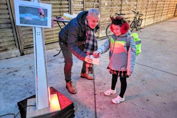 Fluometer op Kortrijkse basisschool moet verkeersveiligheid verhogen: “Halen we 90 procent? Dan organiseren we een filmnamiddag” De speelplaats van basisschool SAZ Kortrijk aan de Wielewaallaan kleurde donderdag 11 december extra fluo. Veel leerlingen droegen de opvallende hesjes door de komst van de fluometer: een prototype dat kinderen beloont wanneer ze verkeersveilig naar school komen. Het toestel is bedacht en gebouwd door vier studenten elektronica-ICT van Hogeschool VIVES: Nigel Mestdagh (Izegem), Tore Roobroeck (Vinkt), Tiebe Declercq (Zulte) en Sam Ameele (Wevelgem).