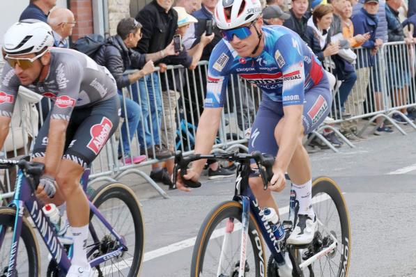 Meulebeke / Profs Meulebeke / Profs Warre Vangheluwe boekt heel nipt allereerste profzege tijdens vierde rit van Vierdaagse van Duinkerke: “Spannend tot op het einde” Warre Vangheluwe heeft vrijdag de vierde etappe gewonnen in de 68e editie van de Vierdaagse van Duinkerke (2.Pro). In de sprint na een kasseirit over 166,8 kilometer tussen Mazingarbe en Pont-à-Marcq haalde onze 22-jarige landgenoot van Soudal Quick-Step het van de Ier Sam Bennett (Decathlon-AG2R La Mondiale). 17 mei 2024