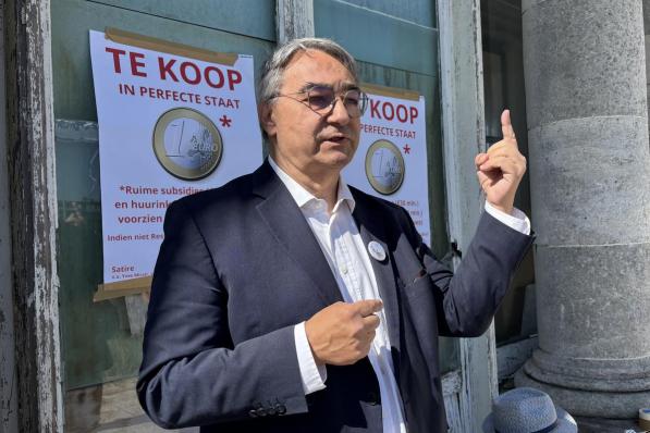 Oostende / Bouw Oostende / Bouw Yves Miroir zet Thermae Palace symbolisch te koop voor 1 euro: “Als de stad verder wordt benadeeld, zullen we juridische procedures voeren” Met een symbolische actie heeft de partij ‘de O mens’ het Thermae Palace Hotel in Oostende te koop gezet voor 1 euro. “Als de stad doorgaat met haar plannen dan voeren we een juridische strijd”, zegt boegbeeld Yves Miroir. 10 augustus 2025