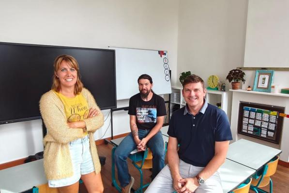 Mesen / Onderwijs Mesen / Onderwijs Basisschool De Horizon viert eerste verjaardag: “De erkenning was een hele geruststelling” Van bouwwerf naar bloeiende school in één jaar tijd: basisschool De Horizon in Mesen heeft heel wat te vieren. De school, die directeur David Breyne (46) na zijn ontslag bij De Kleine Ster oprichtte, kreeg niet alleen een definitieve erkenning “met felicitaties van minister Demir”, maar lanceert nu ook een vooruitstrevend taalproject. Met ongeveer de helft Franstalige leerlingen uit de grensstreek zet de school volop in op tweetaligheid: “Vanaf de peuterklas krijgen kinderen al Franse les en nemen we de Franstalige leerlingen apart voor extra Nederlands”, legt de directeur uit. 30 augustus 2025