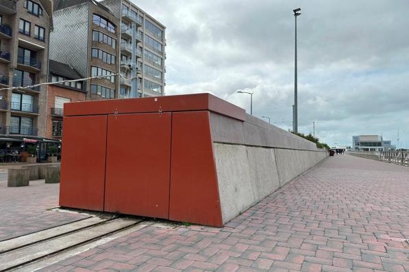 Blankenberge / Wegenwerken Blankenberge / Wegenwerken Hinder Franchommelaan: waterkeringspoort tijdelijk weggehaald 1 oktober 2023