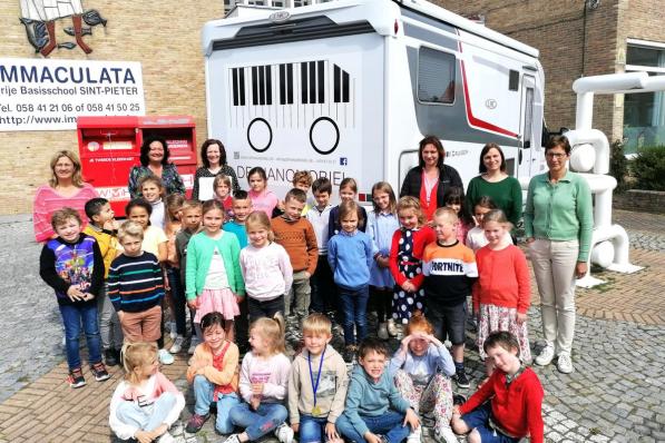 De Panne / Onderwijs De Panne / Onderwijs Primeur voor Sint-Pietersschool: bezoek van pianomobiel van juf Veerle Elst 1 mei 2022