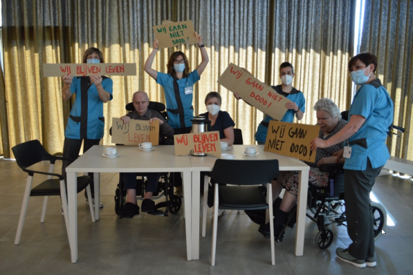 Poperinge / Theater Poperinge / Theater Medewerkers en bewoners spelen toneel in Poperings woonzorgcentrum Emmaüs 8 augustus 2022