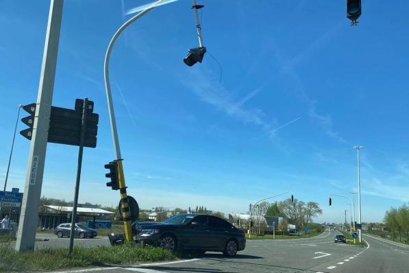 Menen / Verkeersongeval Menen / Verkeersongeval Bestuurder rijdt tegen verkeerslicht na uitwijken voor ambulance 17 april 2022