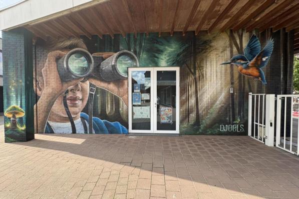 Meulebeke / Kunst Meulebeke / Kunst Djoels maakt graffiti-tekening aan inkom voormalige lagere school: “Een kind, verwonderd kijkend naar wat komt” 22 augustus 2025