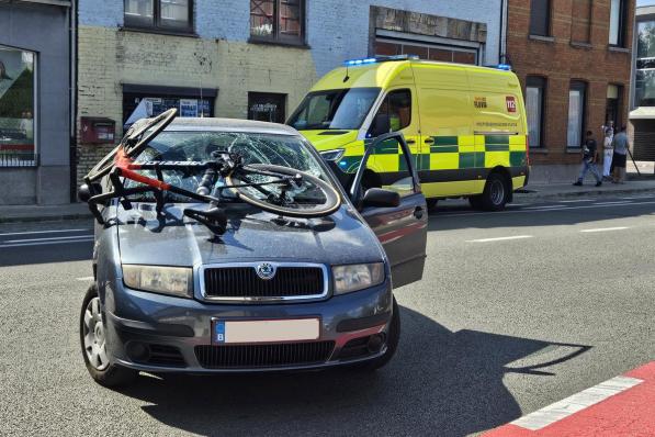Wevelgem / Verkeersongeval Wevelgem / Verkeersongeval Wielertoerist (18) slechts lichtgewond bij spectaculair ongeval: fiets ging bijna door de voorruit van wagen 17 augustus 2025