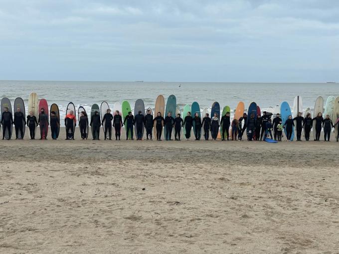 De traditie van de ‘paddle out ’ontstond in de jaren 1920 op de Hawaïaanse eilanden. “Het is een traditie onder surfers wanneer een andere surfer het leven laat. De eerste Paddle Out For Peace vond plaats in 2020 in de VS, na de dood van George Floyd en #blacklivesmatter. Onze Paddle Out For Peace is de eerste in de Belgische surfgeschiedenis.”