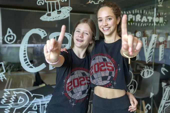 Babet en Milla zijn allebei lid van Hypnosis Dance Academy in Roeselare en haspelen er wekelijks onder leiding van coach Sally Peire een flink aantal trainingsuren af. “Ik train zeven uren per week”, vertelt Babet. “Daarnaast geef ik ook twee uren training als hulpjuf.” Milla traint wekelijks acht uren. Beide meisjes zeggen hun trainingen en wedstrijden vlot te kunnen combineren met hun schoolwerk. “Voor mij was de combinatie vroeger iets moeilijker”, stelt Babet. “Nu is dat oké. Ik heb een beetje meer beweging nodig dan gemiddeld en zit in de sportschool meer op mijn plaats.”