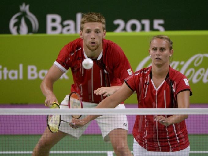 Badmintonners Steffi Annys en Floris Oleffe liggen uit dubbel gemengd