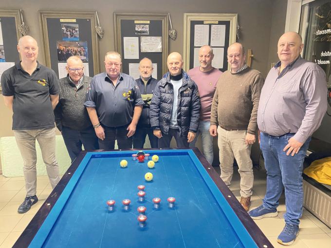 Het team van Snooker Pocket kroonde zich tot kampioen in de interclubcompetitie Grensleie. “Zes teams namen deel”, verduidelijkt kapitein Rik Vandamme, die met zijn medespelers Hans Vaneeckhout, Martin Baert, Frank Himpe, Johny Goerlandt, David Vanderstraeten en Danny Coetsier de titel veroverde. “Behalve ons team waren dat Stador Harelbeke, Voorgeborghte Harelbeke, Klokkestekkers Gullegem, De Melkerij Aalbeke en Willen is Kunnen Kuurne. We verloren het eerste treffen in Stador met 6-4, maar wisten de negen andere partijen telkens winnend af te sluiten. Voor de laatste speeldag, die met 3-7-winstcijfers werd afgesloten bij onze naaste concurrent Stador, waren we al zeker van de titel. (DRD)