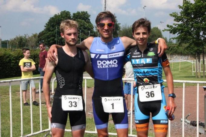 Gedurende het 21 km fietsen, waarin hij naar eigen zeggen niet voluit is gegaan, kon hij zijn voorsprong verder uitbouwen, zodat hij het in de afsluitende 2,5 km lopen enkel nog moest afmaken. Wazo De Rouck werd 1 min 13 sec na hem tweede en Nicolas De Smet vervolledigde het podium.