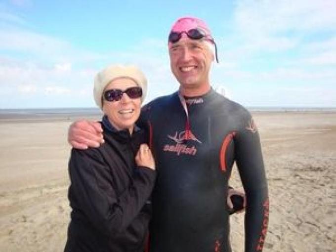 Ondanks zware weersomstandigheden zwom Francis Reubens zondagmiddag van Breskens naar het Heldenplein in Heist. De 51-jarige triatleet tikte na 22 kilometer zwaar labeur aan in 3u30.