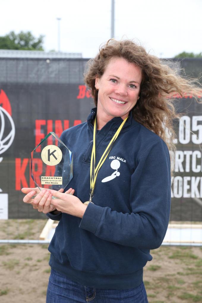 De 35-jarige Ellen Bosma is voor het tweede jaar op rij verkozen tot speelster van het jaar. Zo wint ze na de titel en de beker met KBC Male ook nog eens deze individuele prijs.