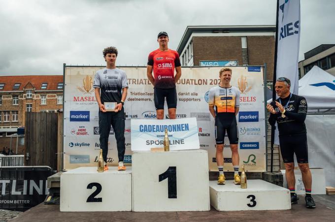 Bij de heren kwam Jasper Sabbe (ook beste Roeselarenaar dit jaar) pas als derde uit het water. Vergeleken met zijn deelname 2 jaar geleden was hij van minuut één de eerste. Dus daar werd het wel een spannende strijd, maar in het lopen wist hij zijn zege vast te leggen in 55’18”. Pep Delvaux werd tweede (55’32”), Siebe de Winter derde (55’37”).