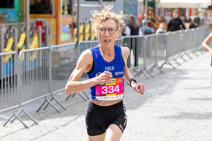 Ze kwam uit in de categorie 55-plussers. Sabine hoopte op een sterke prestatie, en die hoop werd werkelijkheid: ze kroonde zich tot Belgisch kampioene op de 10 kilometer met een tijd van 40’04”. Zus en trainer Veerle deelt in de vreugde. (JM)
