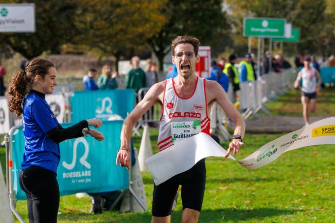 Guillaume Grimard heeft zondag de lange cross bij de mannen gewonnen tijdens de CrossCup in Roeselare. Op Schiervelde haalde hij het van een groepje van drie buitenlandse concurrenten.