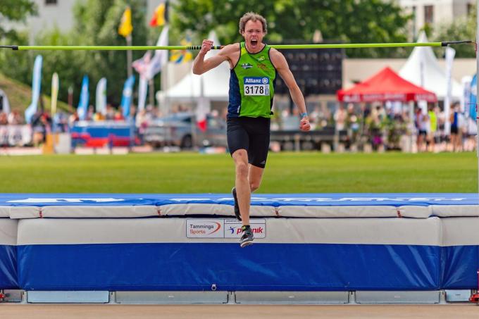 Giebe Algoet (27) verzwikte op 10 juli tijdens een partijtje padel na een verkeerde beweging zijn enkel. “Ik voelde meteen, dat is niet goed. Uiteindelijk viel het nog mee. Mijn zus Britt is kiné en onder haar goede begeleiding ben ik mijn revalidatie aangevat. Op zich kan ik opnieuw lopen, maar een sprint trekken of een afstoot doen lukt nog niet. Dus is er voor mij geen BK.”