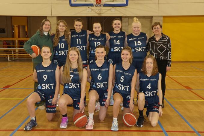 De tweede damesploeg van Basket SKT Ieper treedt dit seizoen aan in eerste provinciale. Na twaalf speeldagen staan de Ieperse dames op de elfde plaats met achttien punten. Op zondag 12 januari wordt de competitie hervat met een trip naar Torhout Lions One. Boven van links naar rechts coach Jelena Rambour, Lena Blanckaert, Aude Porteman, Leonor Romero-Fernandez, Jozefien Nagels, Elin Wyffels en afgevaardigde Sarina Lampaert. Onder van links naar rechts Dieuwke Everaerts, Bo De Meulenaere, Noëmi Bervoet, Laure Duyck en Linde Dedeurwaerder. (foto EF)