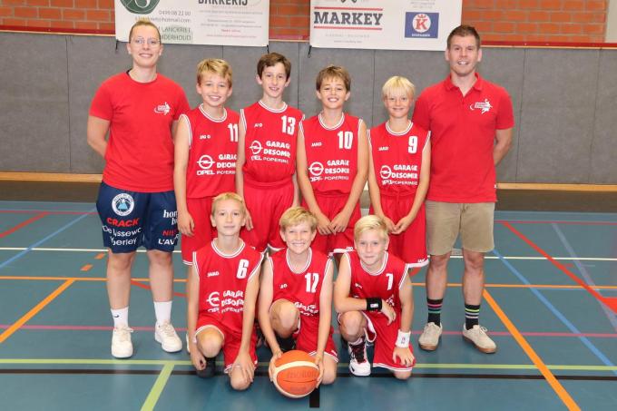 Basket Poperinge brengt dit seizoen twee U12-ploegen in competitie. De A-ploeg won vorig weekend met 89-12 van RS Koekelare. Zondag 22 oktober gaan de Poperingenaars op bezoek bij Wytewa Roeselare. Boven v.l.n.r.: coach Jana Masson, Stan Maeren, Arthur Vannieuwenhuyze, Warre Vanwynsberghe, Daan Goudeseune en ploegverantwoordelijke David Deneire. Onder v.l.n.r.: Mathis Hugues, Juul Rooze en Lars Deneire. (foto EF)