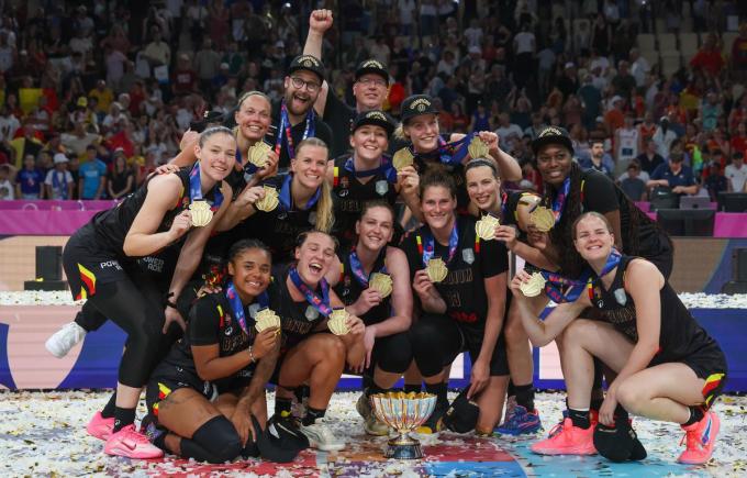 De Belgische basketvrouwen verlengden zondagavond hun Europese titel in extremis. De Belgian Cats wonnen de finale tegen Spanje met 65-67 na een comeback in de slotseconden.