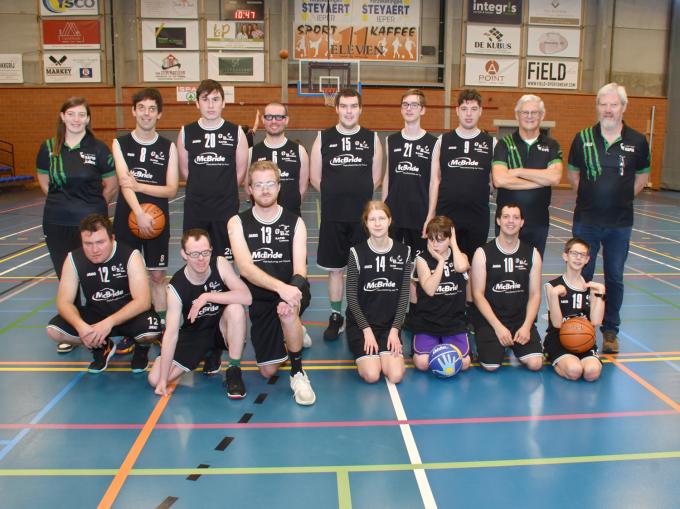 Rapid Langemark heeft niet alleen twee seniorploegen en jeugdploegen in alle leeftijdscategorieën. Sinds 2012 heeft de basketbalclub ook een G-werking voor mensen met een beperking. Onlangs speelde de Langemarkse G-ploeg een thuiswedstrijd tegen Izegem. Op de foto zien we staand: trainster Jolien Verhaeghe, Nicolas Nuytten, Tybo Wicke, Colton Mortelé, Kenny Migneau, Tuur Casteleyn, Joshua Liefhooghe en de afgevaaardigden Patrick Nuytten en Marc Devroedt. Gehurkt: Cedric Pape, Robin Devroedt, Niels Vanacker, Elisa Deraedt, Emiel Buffel, Jeroen Masselis en Aryo Dubois. (RB)