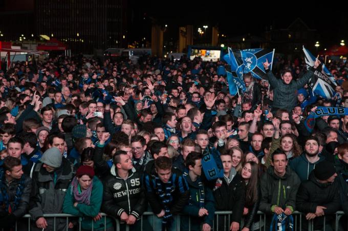 Clubsupporters die zondag niet naar Brussel trekken, kunnen de match op groot scherm bekijken op parking noord aan het Jan Breydelstadion, in de hoek gevormd door de Olympialaan en de Kerkhoflaan. De firma Ultim Events van Bruggeling Ward Benoit, de uitbater van zomerbar Dok, kreeg hiervoor een vergunning.”