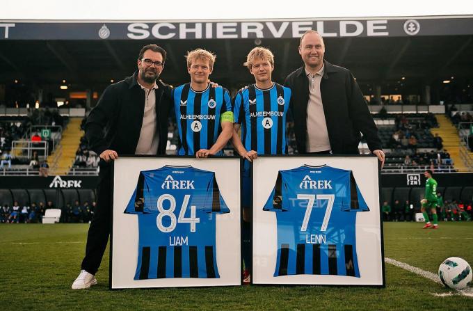 Die laatste zorgde vrijdagavond voor de eindscore voor Club NXT. De Oost-Vlaamse tweeling (21) voetbalde sinds de U11 in de academie van Club Brugge. Beiden hebben een aflopend contract en kunnen blauw-zwart nu definitief verlaten. Liam speelde 84 wedstrijden voor Club Brugge en was ook de vice-kapitein van Club NXT. Lenn kwam 77 wedstrijden in actie voor deze ploeg en was er vorig seizoen topschutter. Uit de handen van teammanager Christophe De Nolf en Academy Director Jarno Verheye, die de ‘Smetjes’ sinds het seizoen 2014-2015 begeleiden en hebben zien evolueren kreeg de tweeling een aandenken aan hun tijd bij Club Brugge. (ACR/ Foto Club NXT)
