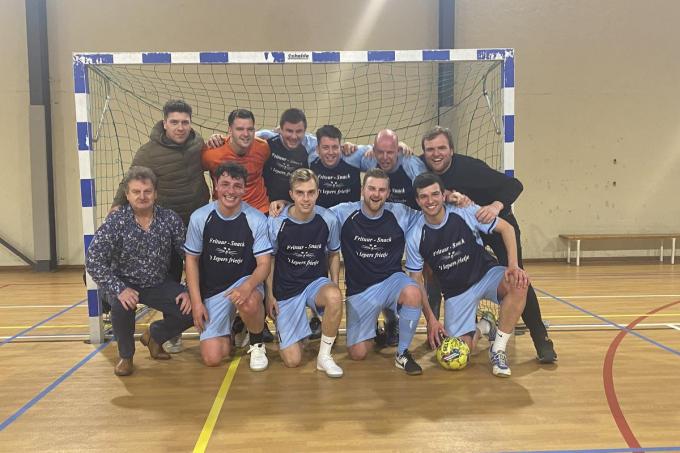 In de Ieperse zaalvoetbalcompetitie was er maandagavond de topper in divisie 1 tussen de nummers één en twee: De Witte Brieke en Drafab Green. Als De Witte Brieke niet verloor, mochten ze voor de derde keer op rij de titel vieren. Bij de rust stonden ze nog in het krijt met 1-2, maar uiteindelijk werd er met 7-2 gewonnen. De Witte Brieke heeft nog twee wedstrijden in de competitie en legde voorlopig een foutloos parcours af. De ploeg maakt nog kans op de dubbel. Over enkele weken staan de kwartfinales op het programma. Op de foto zien we een deel van de selectie van De Witte Brieke. (foto API)